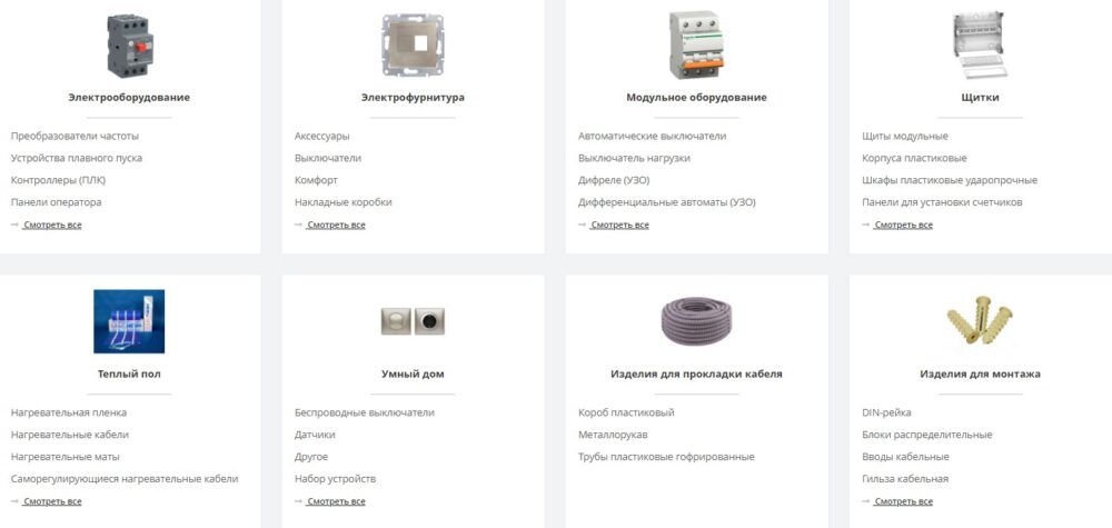 - доступная цена. Так как интернет-магазин работает напрямую с поставщиками, у вас есть возможность купить электрооборудование и комплектующие к ним по доступной цене. Такое сотрудничество позволяет делать закупки на 10-30% ниже рыночной;