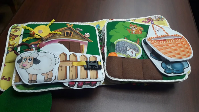Окрім текстур, тактильні книжки часто мають елементи, які можна рухати, відкривати чи перевертати. Це віконця, клапани, об’ємні деталі, що стимулюють дрібну моторику та уважність.