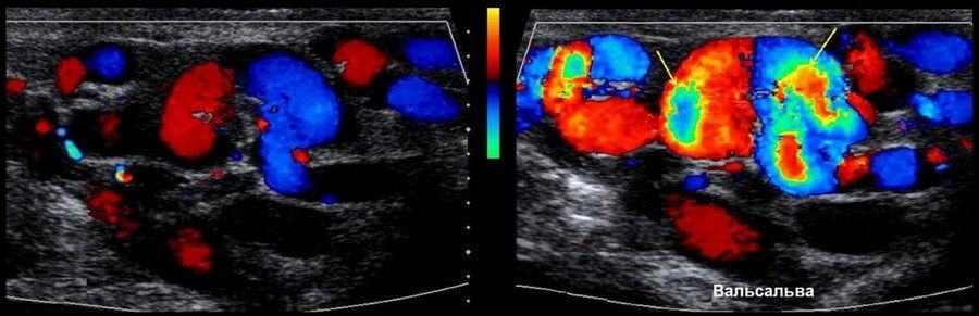 - Отрицательный — отсутствие изменений в размере или кровотоке во время пробы Вальсальвы может свидетельствовать о менее выраженном варикоцеле.