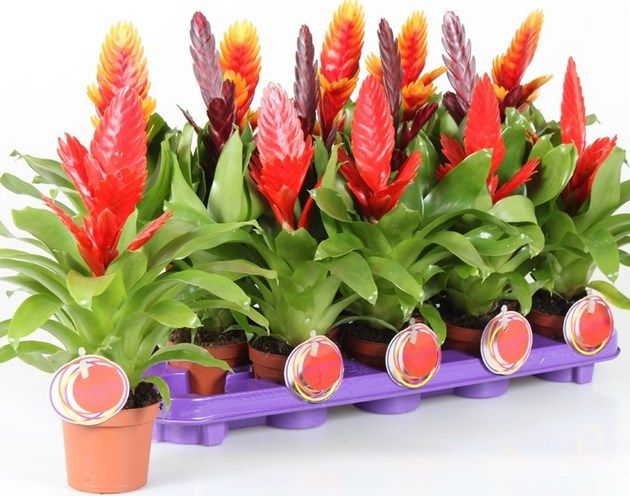 Имеет несколько ярких разновидностей с большим ярким кистевидным соцветием. Можно пересаживать с корнями и отпрысками уже через пару месяцев. Пересаживать нужно тогда, когда горшок стал тесным для растения. Когда цветение заканчивается, обязательно удалять материнские розетки, чтобы дать растению возможность восстановиться и образовать новые розетки.